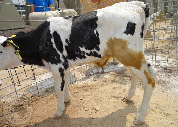 產(chǎn)后感染從接產(chǎn)衛(wèi)生,器具消毒,產(chǎn)欄地面以及臍帶消毒等方面考慮。助產(chǎn)犢牛感染風(fēng)險(xiǎn)往往比自然分娩的要高,部分原因就是經(jīng)過(guò)產(chǎn)科鏈未消毒,外傷,員工未帶手套和應(yīng)激等造成的。我更偏好不銹鋼的各種接助產(chǎn)器具,無(wú)它,只是更加方便消毒和維持干凈而已。產(chǎn)欄的地面干凈程度也十分重要,因?yàn)闋倥T诓墒吵跞橹皫缀跏橇忝庖郀顟B(tài),任何的致病微生物都可能致命。通常我們也推薦生產(chǎn)在產(chǎn)欄外或糞道的犢牛需要注射一針長(zhǎng)效抗生素幫助抵抗可能的感染。目前,我發(fā)現(xiàn)更多的牧場(chǎng)臍帶消毒不到位,很容易造成臍部感染,從而通過(guò)血液循環(huán)積累到關(guān)節(jié)部位,常見(jiàn)紅腫,發(fā)熱甚至破損外傷。感染的致病微生物很多,包括沙門(mén)氏菌,大腸桿菌還有支原體等。